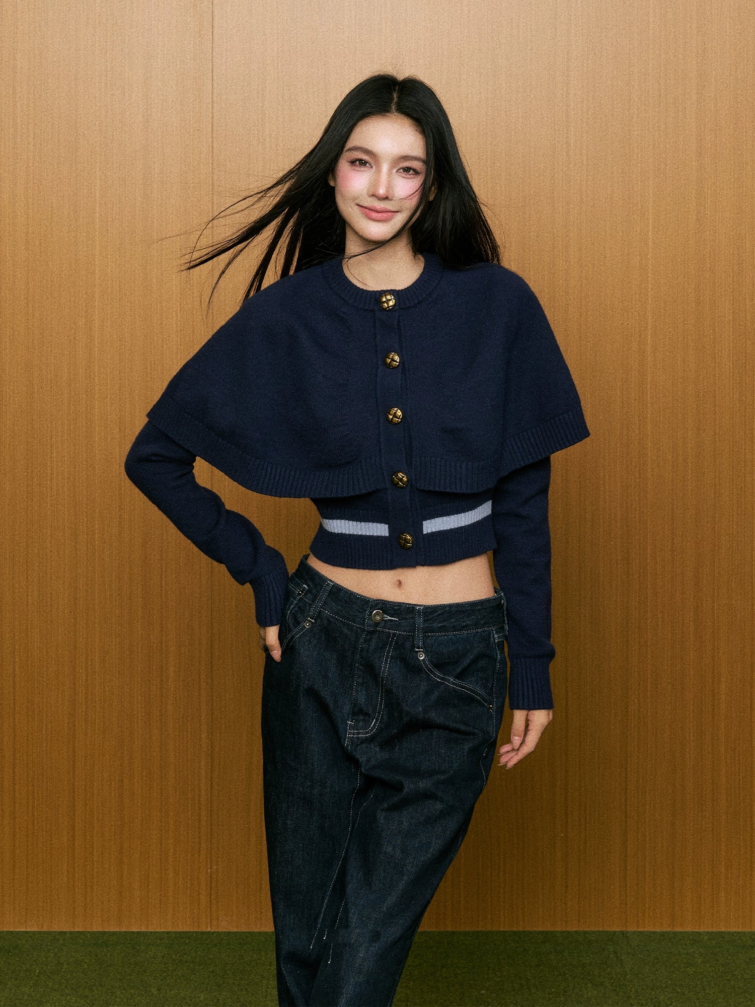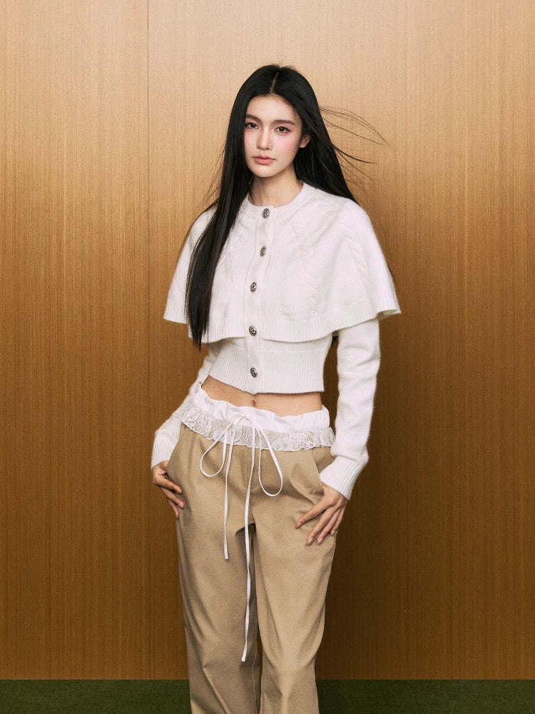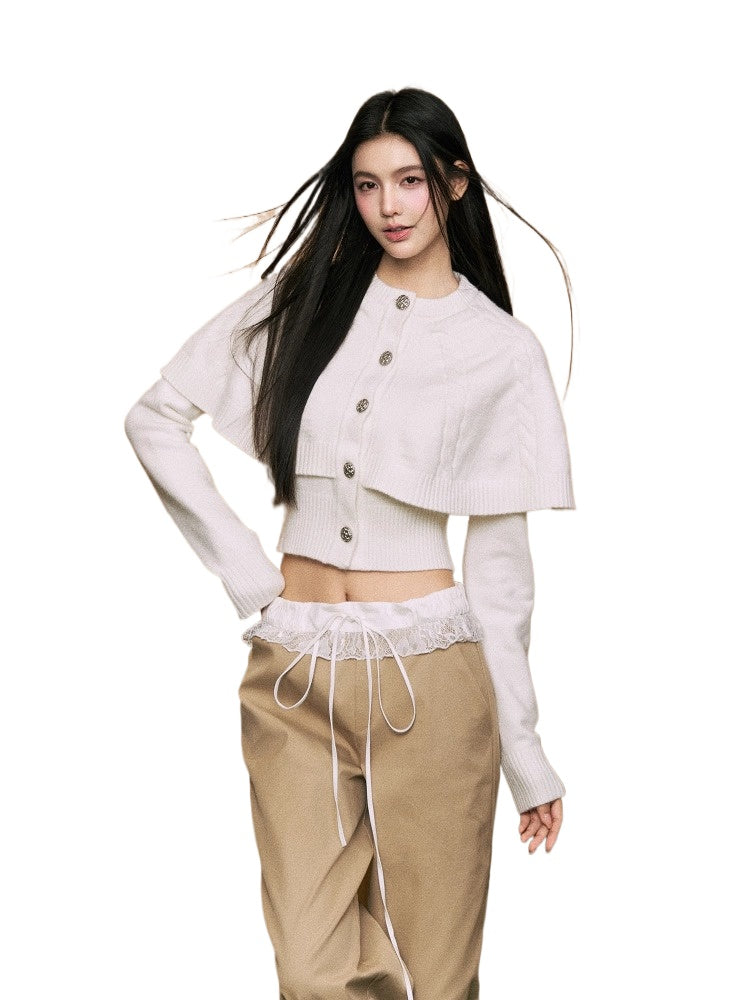 Cape-Style Twisted Cable Knit Cardigan Sweater