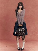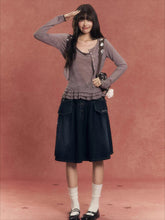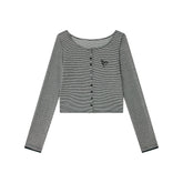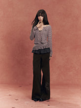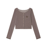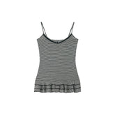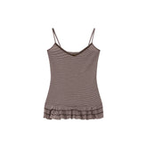 This autumn-ready two-piece knit set features a fitted striped camisole paired with a cropped button-up cardigan for a refined, layered look. Crafted with a soft, breathable knit texture, the set balances comfort with a flattering, body-skimming silhouette. Delicate lace trim detailing adds a subtle feminine touch, while the coordinated design makes it easy to style together or wear separately for versatile everyday outfits.