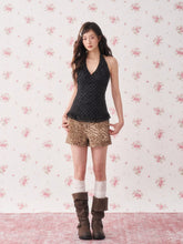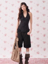 This vintage-inspired halter camisole features a classic black-and-white polka dot pattern that brings a playful yet elegant touch to summer styling. Designed with a halter neckline and adjustable tie detail, it highlights the shoulders while creating a flattering, feminine silhouette. The fitted shape and lightweight structure make it perfect for layering or wearing on its own, offering both comfort and effortless charm. Easy to pair with skirts, denim, or tailored trousers, this piece adds a sweet retro accent to everyday outfits. Crafted from pure cotton, it provides breathable softness and all-day comfort in warm weather.