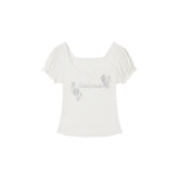 Rhinestone Floral Square-Neck Fitted Baby Tee