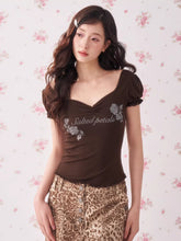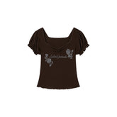 This American-inspired “hot girl” style baby tee features a flattering square neckline that elegantly frames the collarbone while enhancing a sleek, feminine silhouette. The front is embellished with sparkling rhinestone floral lettering, adding playful shine and vintage-inspired attitude. Designed with a slim, body-hugging fit and cropped proportion, it accentuates the waist for a flattering shape. Crafted from a soft stretch lyocell blend, the fabric feels smooth against the skin while providing flexibility and breathable comfort for everyday summer styling.