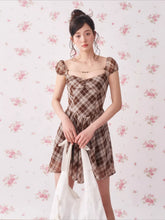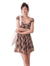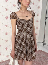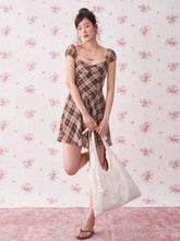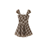 Vintage Plaid Puff Sleeve A-Line Mini Dress