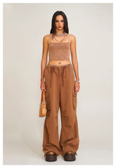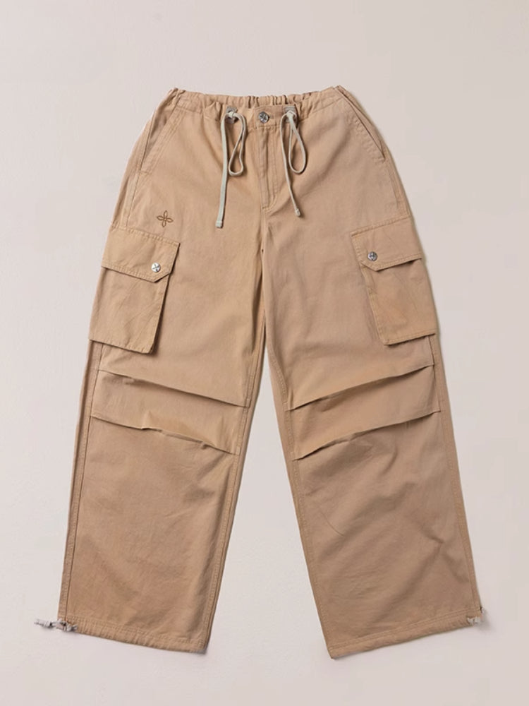 From SMFK COMPASS classic series. Made of cotton-type classic original fabric, showing the material beauty. With the brand's black and white color system, earth-tone pure colors, wild camouflage and animal patterns, it presents the beauty of modern printing technology. SMFK ICON retro parachute pants, mid - low waist type, with super-large three-dimensional tooling outer pockets on both sides of the legs.