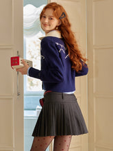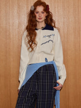A retro-inspired cropped cardigan featuring delicate embroidery and a contrasting collar for a refined, stylish touch. Designed with a single-breasted button front and a subtly cinched waist, this piece flatters the figure while maintaining a relaxed, versatile silhouette. Perfect for layering or wearing alone, it adds a sophisticated charm to both casual and polished outfits.