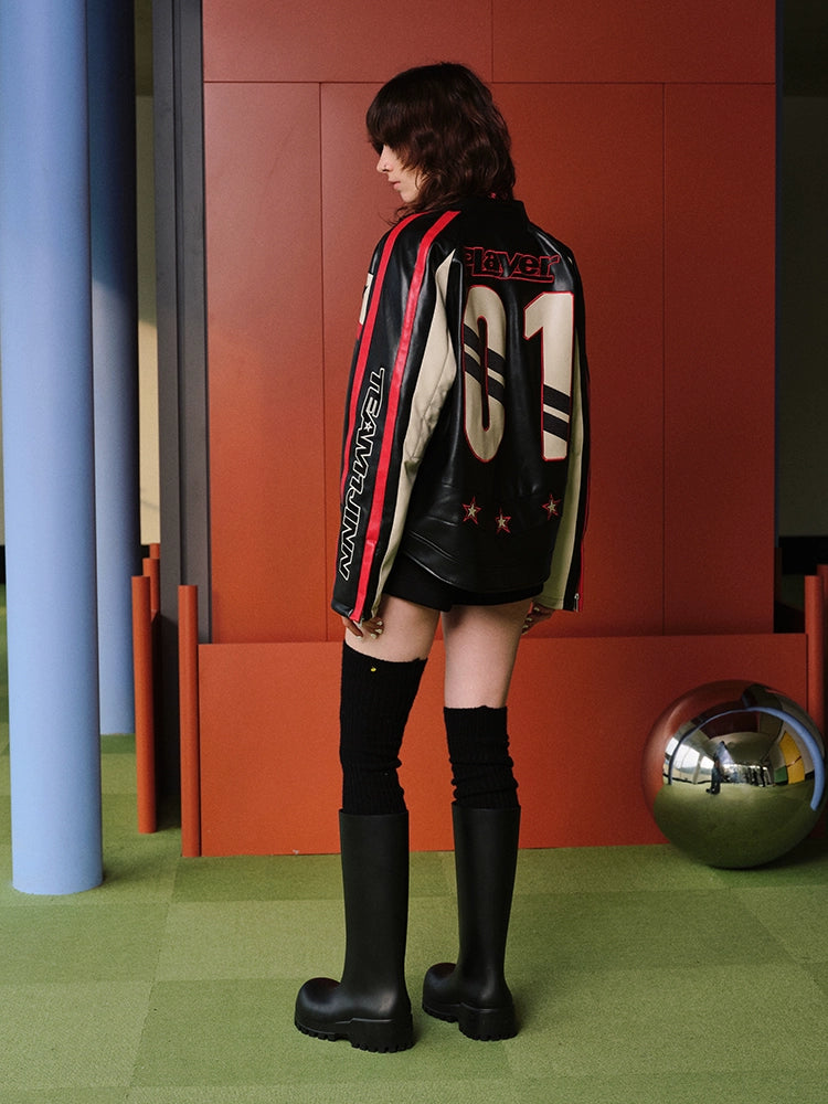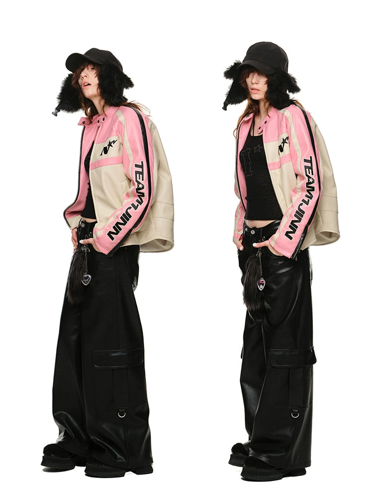 This padded moto jacket features a bold contrast-color design with a classic moto style. With its padded interior, this jacket provides extra warmth while maintaining a stylish, edgy look. Perfect for both casual and semi-formal occasions in colder weather.