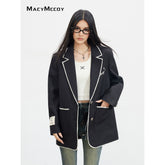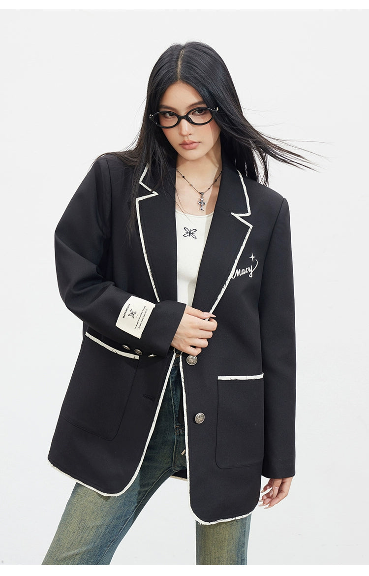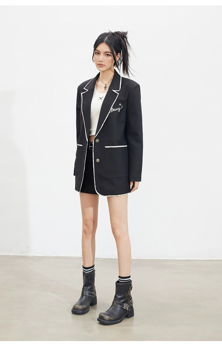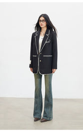 Structured tailoring with premium suiting fabric for a defined silhouette.