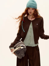A chic and playful knit cardigan designed with a unique faux two-piece structure and contrast color paneling. The delicate ruffled trim and soft knit texture bring a touch of vintage femininity, while the fitted silhouette and refined details make it an effortlessly versatile wardrobe piece. Perfect for pairing with high-waisted trousers or skirts for an elegant yet casual everyday look.