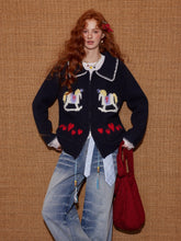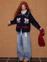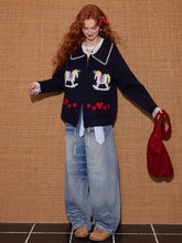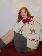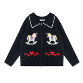 A cozy and refined knit jacket featuring a charming pony jacquard pattern and contrasting trims for a playful yet elegant touch. The collared neckline and zip-up front design lend it a modern, sporty edge, while the soft wool-blend fabric offers warmth and comfort. This piece perfectly balances sophistication and casual ease — ideal for creating stylish, cozy looks during transitional seasons.