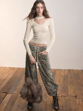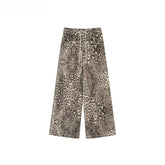 A fashion-forward pair of casual sweatpants featuring a bold contrast waistband and minimalist patch pockets for a modern, street-style aesthetic. Crafted from 100% cotton, these pants provide a soft, breathable, and comfortable fit suitable for everyday wear. The straight-leg silhouette elongates the legs, while the leopard-print detailing adds a touch of effortless attitude. Perfect for pairing with cozy knits or cropped tops for a chic yet relaxed fall and winter look.