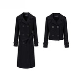A statement wool-blend coat that redefines versatility and structure. Designed with a detachable hem, this piece transforms effortlessly between a long overcoat and a cropped jacket, allowing you to adapt your style to different occasions and temperatures. Crafted from a heavy, textured fabric with a tailored silhouette, it delivers both warmth and refinement. The structured shoulders and sleek waistline create a balanced, modern aesthetic — a must-have for sophisticated fall and winter wardrobes.