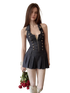 The back features a tasteful open-back design that introduces a light, breathable feel while highlighting the natural lines of the back. A delicate tie detail at the back further enhances the silhouette and adds an element of femininity.