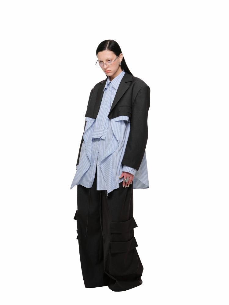 Classic lapel collar with a dropped shoulder design enhances shoulder proportions.
