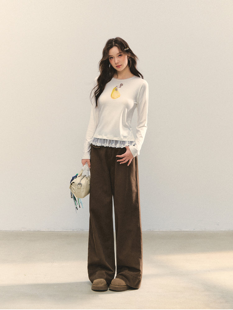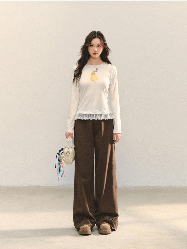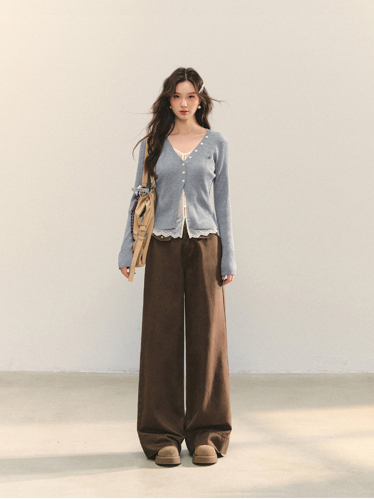 High-quality denim fabric, soft and skin - friendly after washing process, comfortable and not easy to deform. The loose straight-tube version accommodates the figure, hides leg defects and modifies the leg shape; the high-waist design lifts the waist line, lengthens the proportion, makes you look taller and slimmer, and can also wrap the abdomen to bring a sense of security. Various figures can handle it. The checkered splicing lace waist head design breaks the monotony, and the embroidered flowers at the pockets add flexibility and soft beauty to the shape.