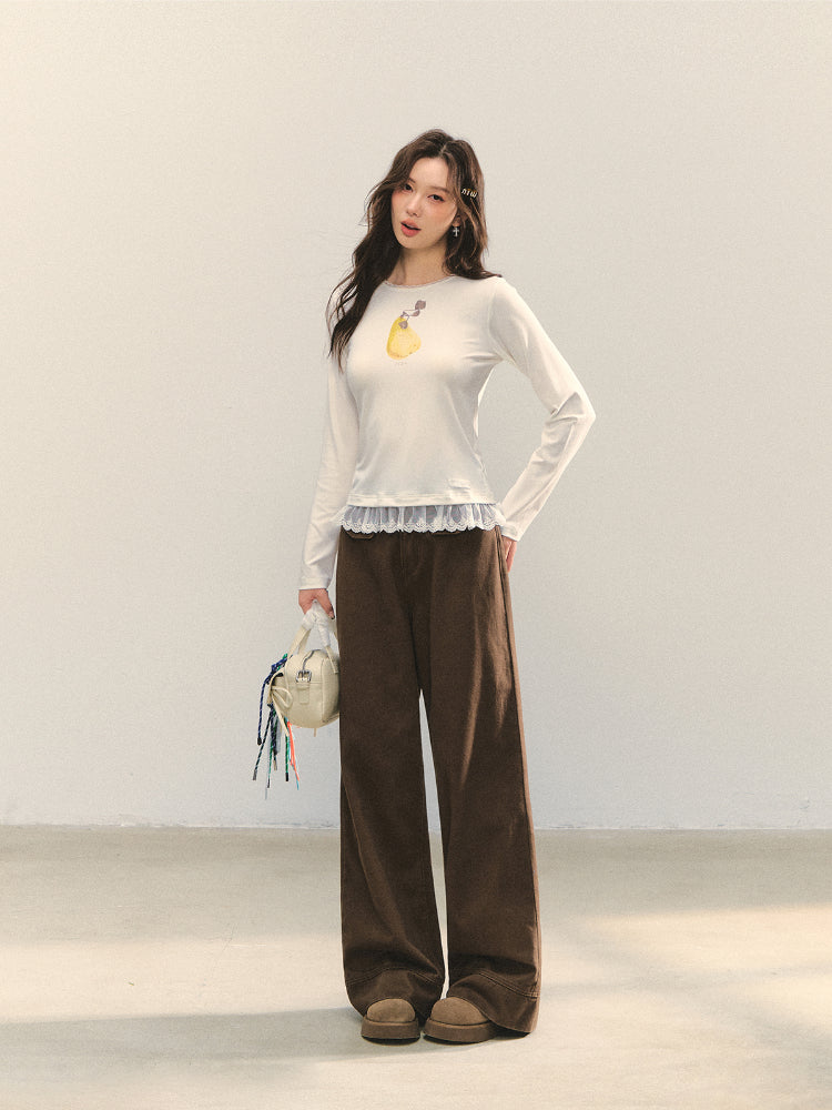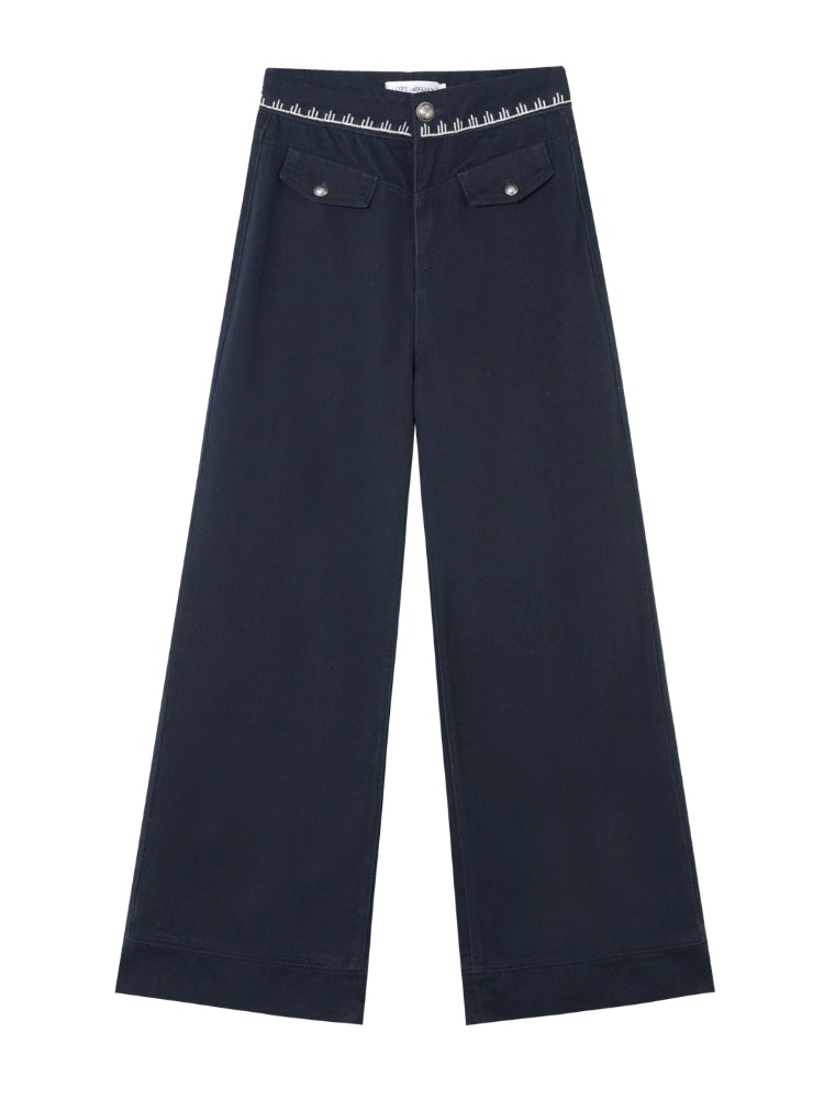 Cross-Stitch Floral Wide-Leg Pants