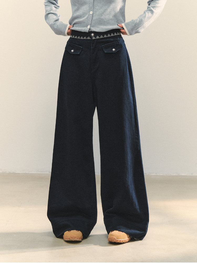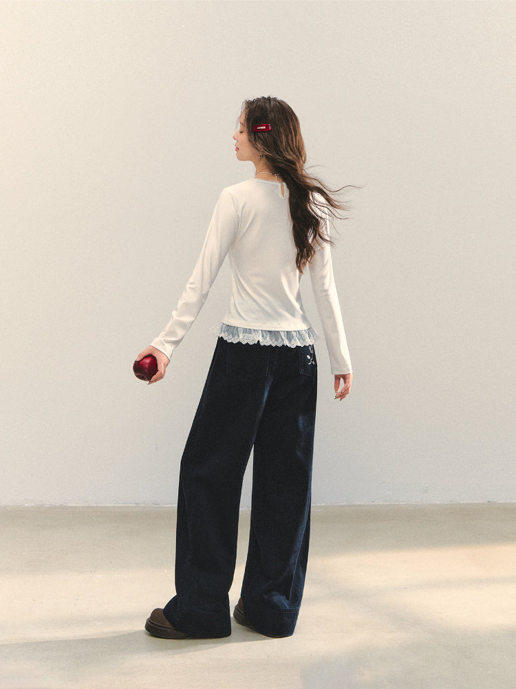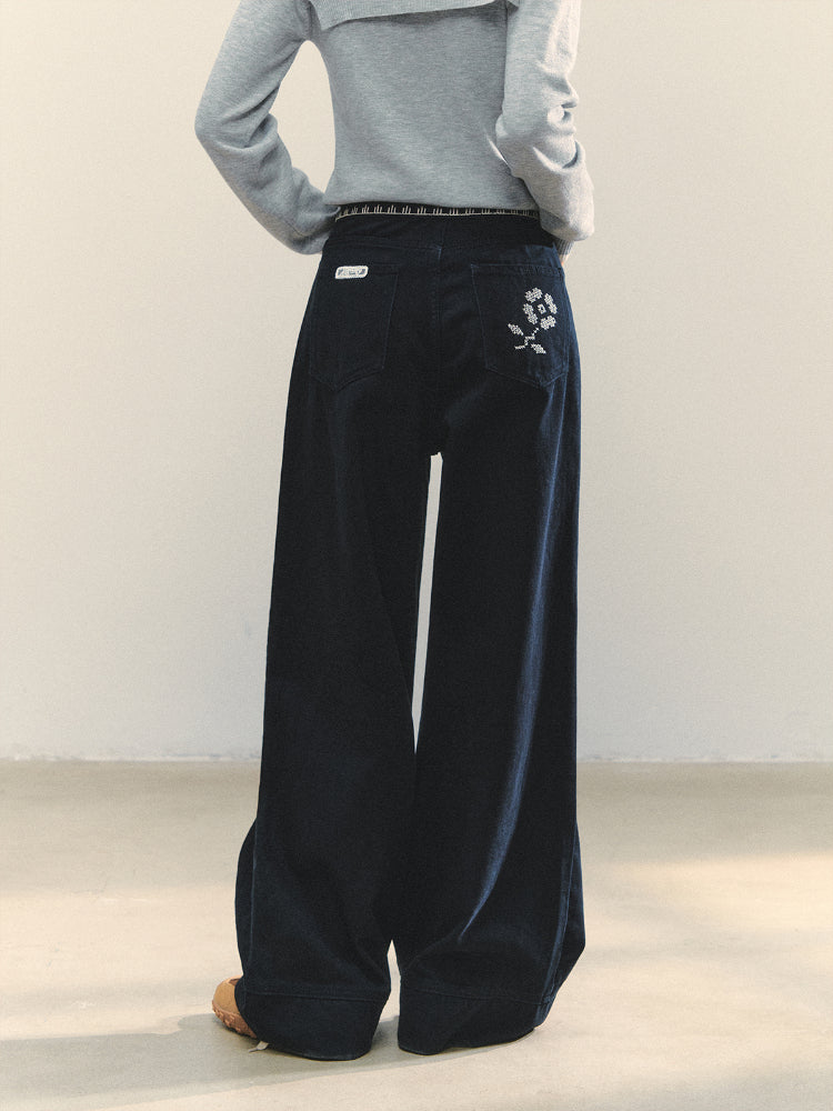 Cross-Stitch Floral Wide-Leg Pants - CHINASQUAD