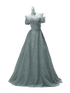 This pale teal couture gown is architected with eleven meticulously positioned boning channels, sculpting the waist into an elegant three-dimensional silhouette with exceptional structure and refinement. The four-layer skirt forms a perfectly balanced, flowing profile, blending softness with subtle architectural volume. Crafted through intensive hand-finished techniques, the gown embodies true heavy-work atelier craftsmanship and is not a market-version product. It is available exclusively through full customization based on the client’s height, weight, and complete body measurements, ensuring a flawlessly contoured, bespoke fit.