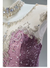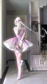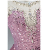 This stunning pink dress is a luxurious handmade design that is not available in the market. The dress features intricate craftsmanship with sparkling details, offering a perfect fit without the addition of a crinoline. The waist is supported by 10 pieces of bone structure, providing a beautifully sculpted and structured silhouette. The gown's flawless effect in the image highlights its exquisite tailoring and design. This dress is custom-made based on the height, weight, and measurements of the wearer, ensuring a personalized and perfect fit.