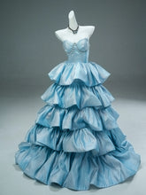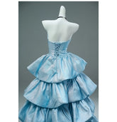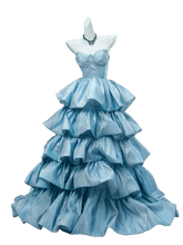 This luminous blue couture gown is crafted with a five-layer skirt supported by structured hard netting, forming a perfectly sculpted silhouette with dramatic volume and architectural precision. The design showcases meticulous heavy-work craftsmanship, elevating its iridescent texture and cascading tiers. As a premium non–market-version atelier piece, the gown is offered exclusively through full customization based on the client’s height, weight, and complete body measurements, ensuring an impeccably contoured, fully bespoke fit.