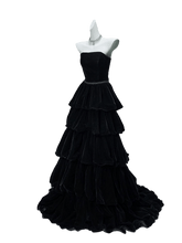 This luxurious black couture gown features a substantial, weighty construction of approximately 5.5 jin, delivering an exceptional sense of presence and premium craftsmanship. The bodice is structured with six precisely placed boning channels, ensuring refined shaping and a sculpted, elegant silhouette. Crafted through intensive artisanal techniques, this piece stands apart as a true heavy-work atelier creation—not a market-version product. The gown is available exclusively through full customization based on the client’s height, weight, and complete body measurements, guaranteeing an impeccably tailored bespoke fit.