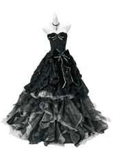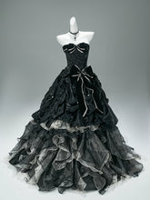 This refined black couture gown features a four-layer skirt enhanced with an additional outer tiered construction, creating a sculpted, multidimensional silhouette with exceptional volume and fluidity. The bodice is reinforced with ten precisely positioned boning channels, delivering elegant three-dimensional shaping and impeccable structural support. Crafted from carefully selected materials and finished through intensive hand-done techniques, this piece exemplifies true heavy-work atelier craftsmanship—not a market-version product. The gown is offered exclusively through full customization based on the client’s height, weight, and full body measurements, ensuring a flawlessly contoured, bespoke fit.