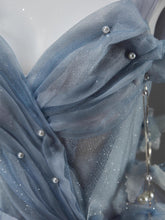 This couture gown is meticulously structured with seven precision-placed boning channels, sculpting the waist into an elegant, three-dimensional silhouette. Its opulent eight-layer skirt forms a flawless voluminous profile, blending ethereal movement with architectural refinement. Presented in both a serene blue tone and a soft lotus hue, each version is crafted through intensive hand-finished techniques, embodying true heavy-work atelier craftsmanship rather than any market-version design. The gown is available exclusively through full customization based on the client’s height, weight, and complete body measurements, ensuring a perfectly contoured, bespoke fit.