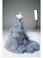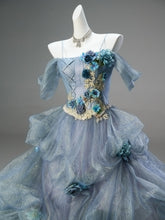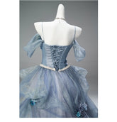 This enchanting light blue gown with a voluminous skirt is a luxurious handmade creation that is not available in the market. Designed with a four-layer skirt and an outer layered design, it creates a flawless and breathtaking silhouette. The dress is enhanced with 12 pieces of bone structure at the waist, offering strong support and creating a sculpted, contoured shape. Without the crinoline, the dress still maintains its stunning effect, showcasing the beauty of its intricate craftsmanship. This dress is custom-made based on the height, weight, and measurements of the wearer, ensuring a perfect and personalized fit.