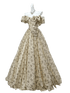 This exquisite couture gown is constructed with eight precision-engineered boning channels, providing structured support and enhancing the body’s natural lines with a sculpted, elegant silhouette. The voluminous skirt is composed of six meticulously layered panels, creating a full, flowing shape that moves with exceptional grace. Rendered in a refined yellow hue, the gown features intensive handcrafting throughout, distinguishing it unmistakably from any market-grade production.