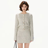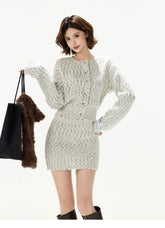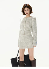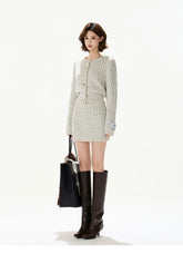 Knit Cardigan & Mini Skirt Tweed-Style Set