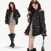 This original designer jacket channels refined “chaebol heiress” elegance with a timeless French-inspired tweed silhouette. Crafted in an elevated grey tone, it features a relaxed, boxy fit that balances structure and softness for effortless sophistication. The textured tweed fabric adds depth and richness, while the clean tailoring delivers a polished, high-end finish. Easy to style and seasonless in appeal, this jacket is a confident wardrobe staple—perfect for daily wear, office looks, or elevated casual outfits with understated luxury.
