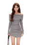 This elegant knit mini dress features a refined off-shoulder neckline that beautifully highlights the collarbone and shoulders, delivering a subtle yet sensual appeal. Designed with a slim, body-hugging silhouette, it accentuates the waist and hips for a flattering, feminine shape. The soft, light floral tone adds a gentle, graceful mood, making it perfect for both daytime elegance and evening outings. Crafted with stretch for comfort, this dress balances sophistication and allure in a clean, modern design.