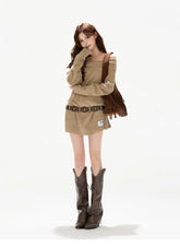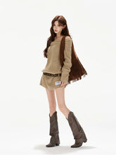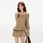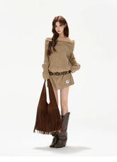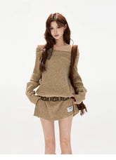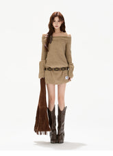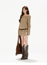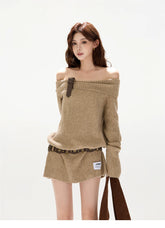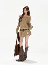 This original designer sweater dress blends cozy warmth with a subtly sexy, relaxed silhouette. Designed with a soft off-shoulder neckline, it highlights the collarbone while maintaining a laid-back, effortless feel. The statement bow detail adds a feminine accent, balancing sweetness with modern allure. Crafted in a thick wool-blend knit, the mini-length cut elongates the legs and enhances proportions, making it perfect for autumn and winter styling—whether worn alone or layered for a chic, cozy look.