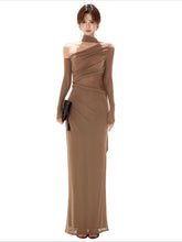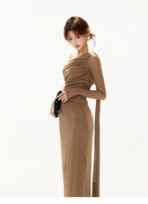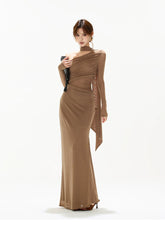 One-Shoulder Mesh Cut-Out Maxi Dress