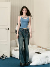 Dark Blue Straight-Leg Flared Jeans - CHINASQUAD