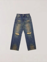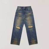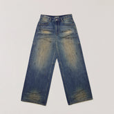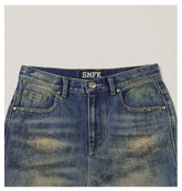 A reinterpretation of SMFK’s signature denim craftsmanship, these jeans feature a wide straight-leg silhouette with distressed detailing and a hand-faded wash for a rugged, vintage-inspired aesthetic. The cross statue motif subtly embodies the brand’s symbolic edge, while the premium cotton fabric ensures comfort and durability. Combining structure and softness, this piece delivers a balanced expression of rebellion and effortless style—perfect for creating a refined streetwear statement.