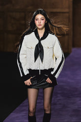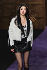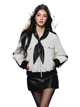 A chic and feminine quilted jacket that combines classic warmth with contemporary detailing. Crafted from soft diamond-patterned cotton padding, it features a detachable bow-tie collar that adds a touch of sophistication and charm. The jacket is lightweight yet insulated, offering excellent wind resistance and warmth for the winter season. Perfect for both casual and refined looks, this design merges function with elegance.