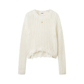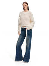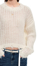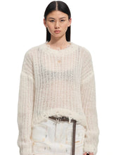 The Distressed Mohair Wool Knit Sweater combines artisanal texture with contemporary edge. Crafted from a chunky mohair-wool blend yarn, it delivers a soft yet structured feel with a subtle hairy texture. The distressed open-knit pattern adds visual depth and breathability, creating a semi-sheer look that feels effortlessly modern. Lightweight yet warm, this relaxed silhouette piece merges comfort, tactility, and bold individuality — perfect for layering through the transitional season.