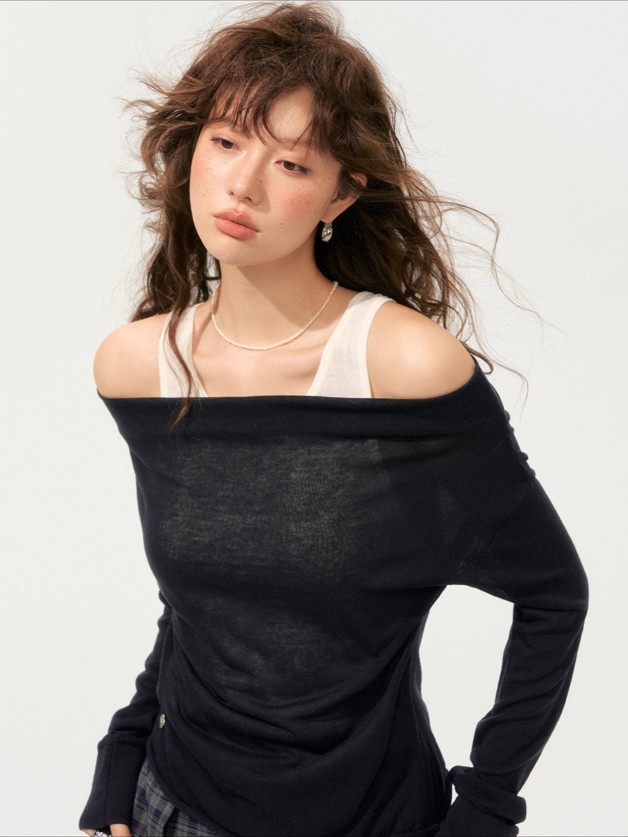 Fake Two-Piece Color-Block Draped Collar Knit Top - CHINASQUAD