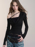 Fake Two-Piece Lace Off-Shoulder Beaded T-Shirt - CHINASQUAD