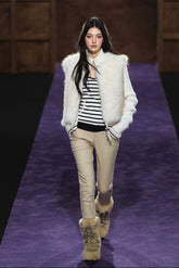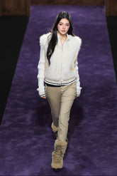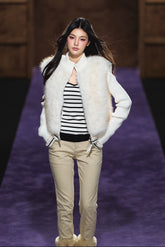 A statement winter piece that merges luxurious faux fur with soft knit panels in a sophisticated two-in-one design. This vest-style sweater features a plush faux fur body with subtle knit sleeves and trim, creating a perfect balance between warmth and style. The cropped silhouette and delicate texture layering make it a chic option for both casual and refined winter looks, offering warmth without bulk.