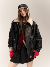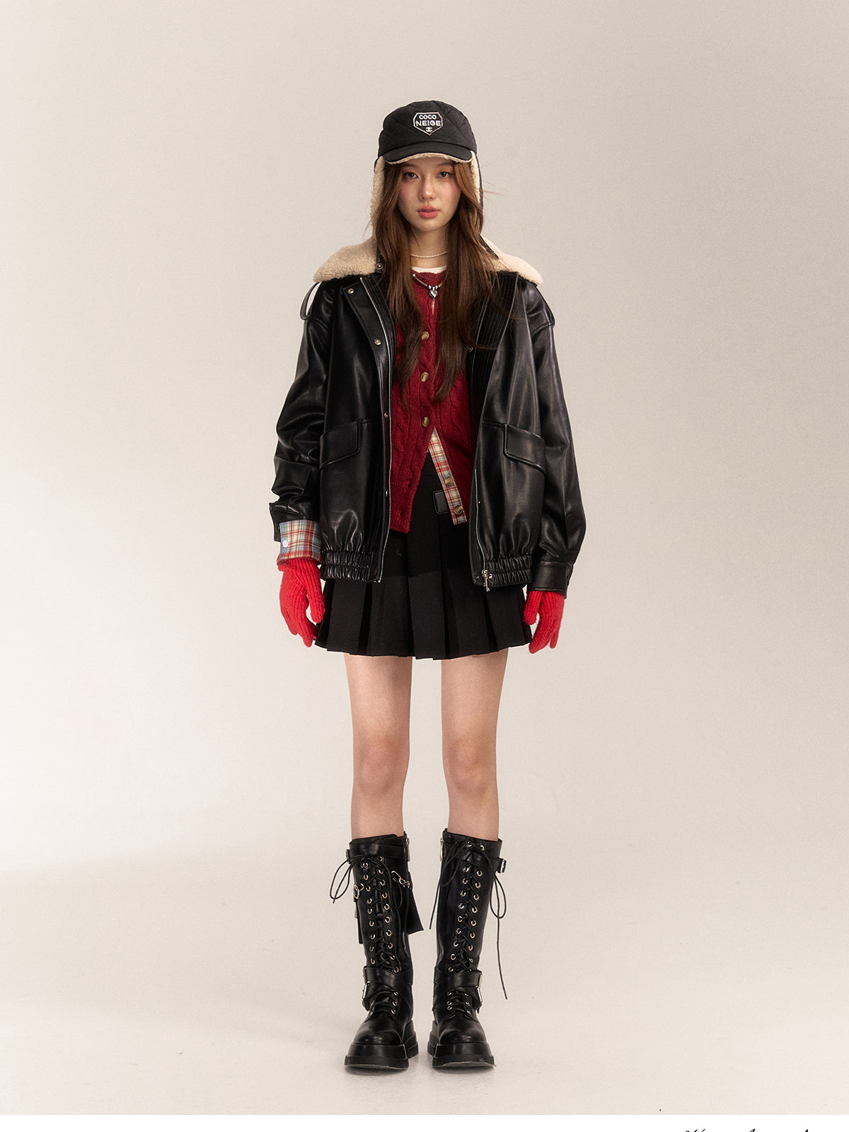 This vintage-inspired faux leather and shearling jacket is filled with premium white duck down for ultimate warmth and style. The versatile design makes it a winter wardrobe essential, combining elegance and functionality.