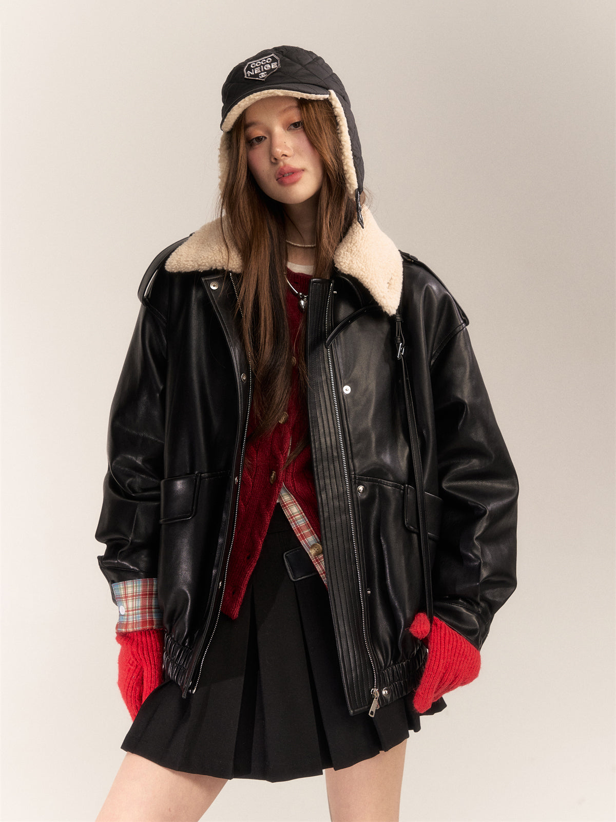 Faux Leather & Shearling Down Jacket - CHINASQUAD