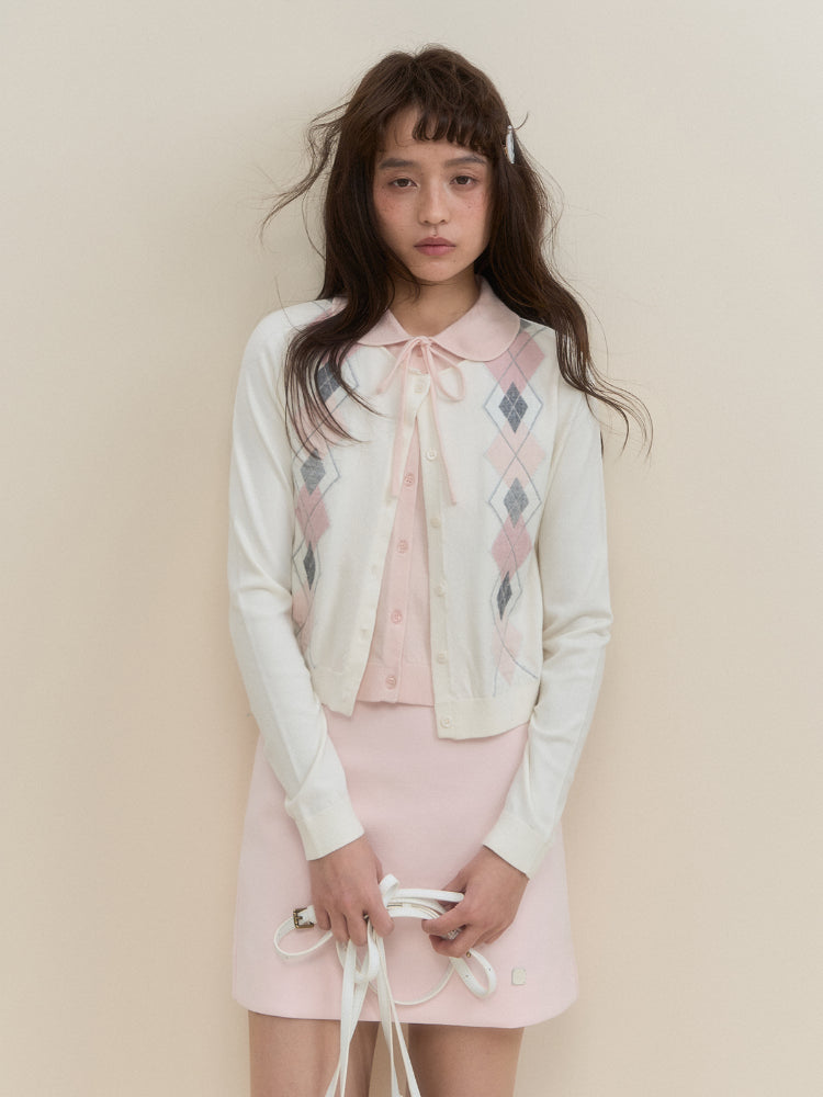 Faux Two-Piece Pink and White Argyle Knit - CHINASQUAD