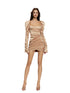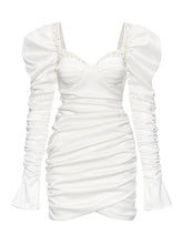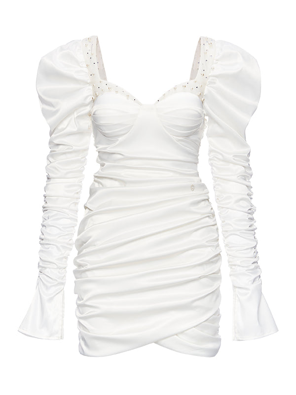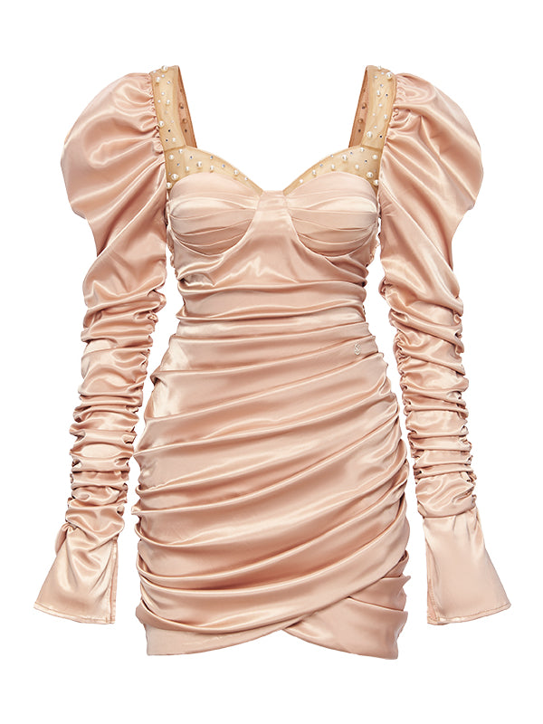 (Final Sale) Ruched Beaded Satin Bodycon Dress