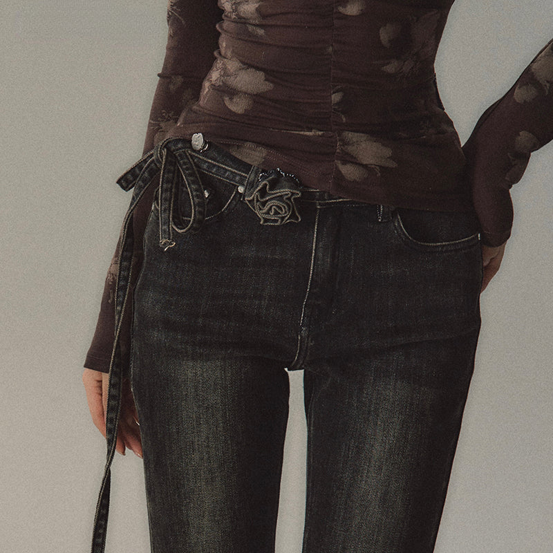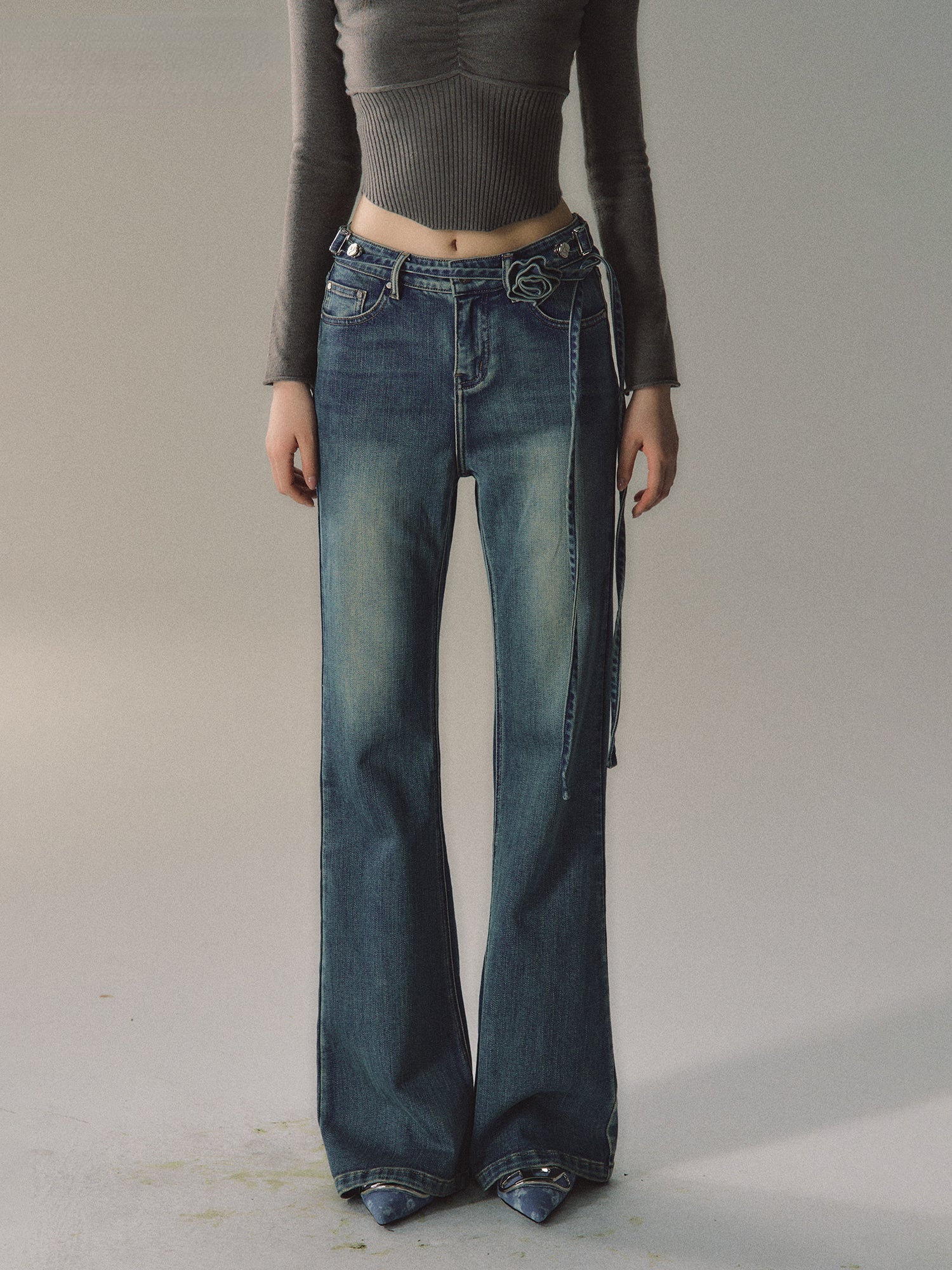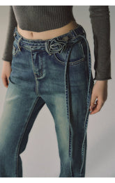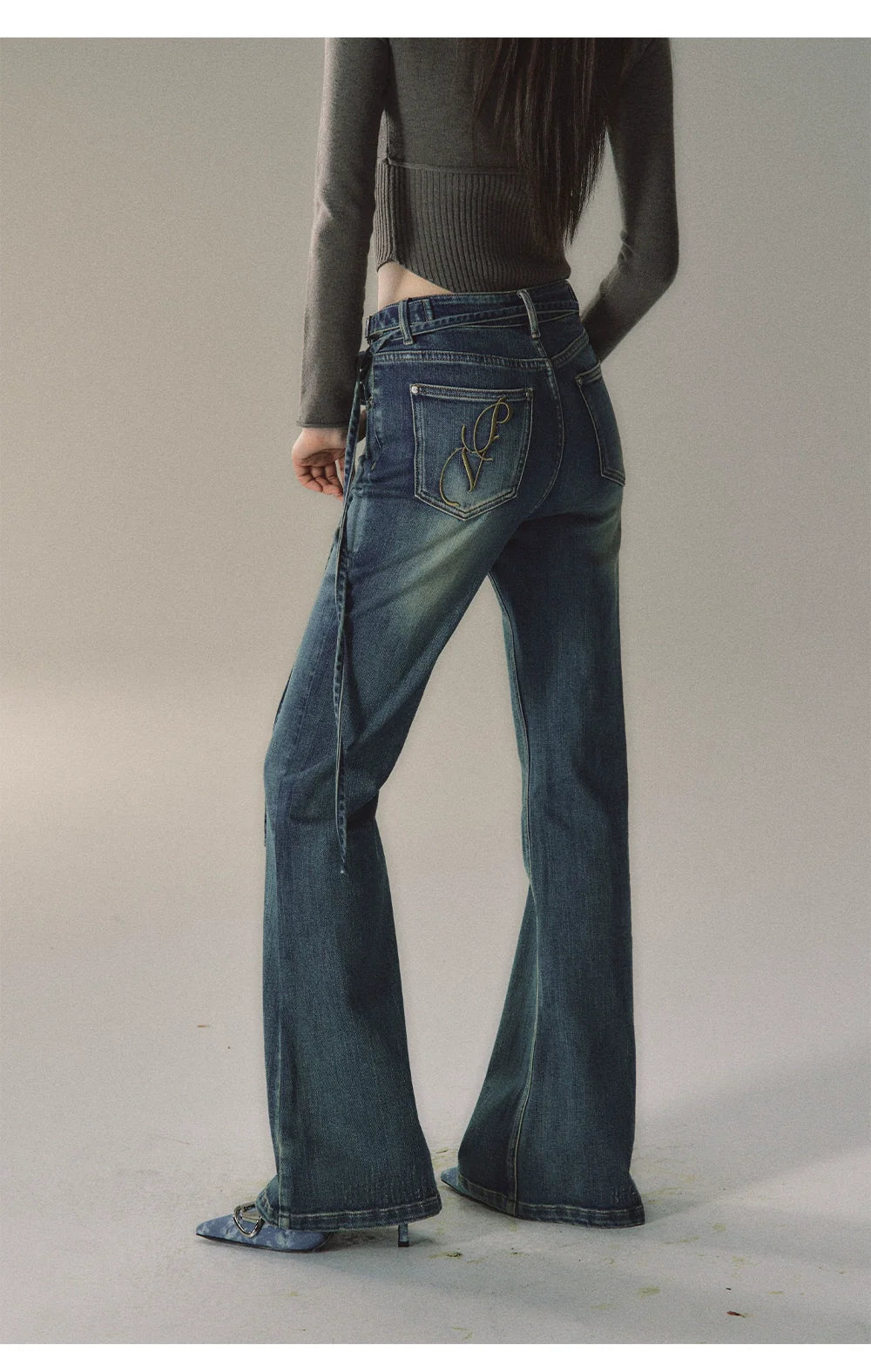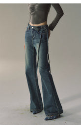 Vintage Distressed Flared Denim Jeans - CHINASQUAD