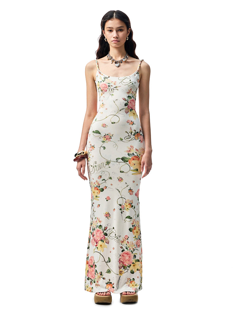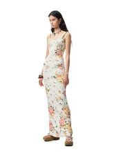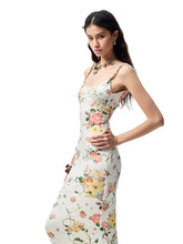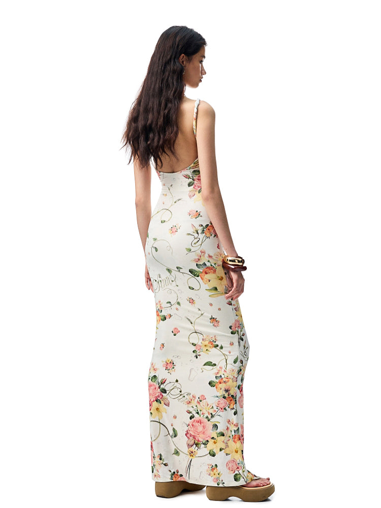 This is a summer vacation - vibe knot - tied floral print spaghetti - strap dress. It is an A - line long dress with a tight - fitting waist, which perfectly modifies the body curve. The U - shaped neckline trims the neck line, and the knotted shoulder straps paired with a large open - back design add a sense of relaxation.