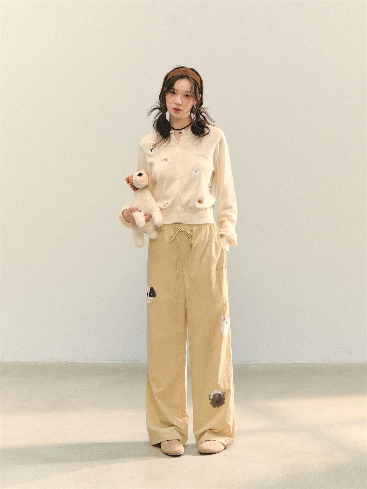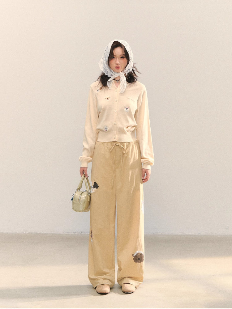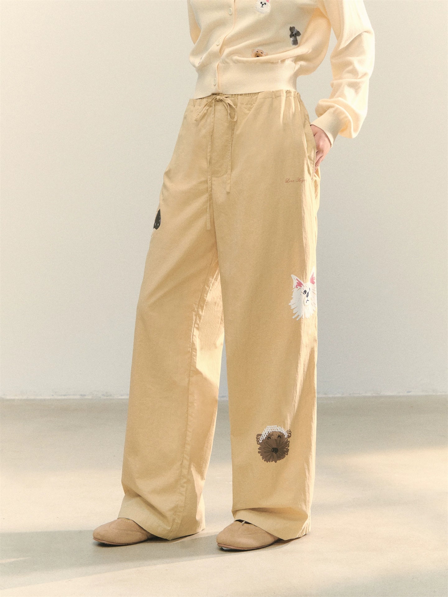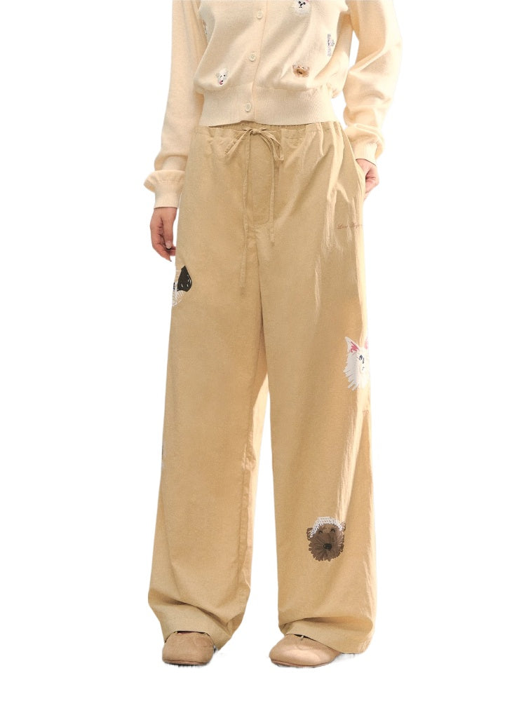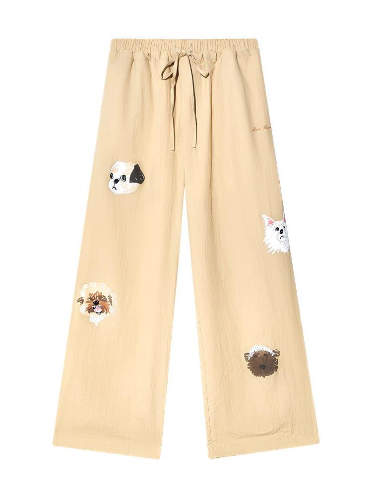 The high-quality fabric is light and thin, with no sense of heaviness when worn, suitable for spring and summer; nylon fabric is wear-resistant and wrinkle-resistant, not easily damaged, pilled or deformed during daily wear.The straight cut is smooth from the hips to the cuffs, covering the deficiencies of leg lines, making the legs look straight and slender, and the version is neat and not tight.The classic khaki color is versatile and suitable for everyone; the dog print is a highlight, adding cuteness and playfulness to the simple design.