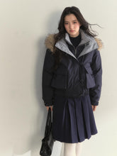 Glacier Blue & Navy Plaid Panel Down Jacket