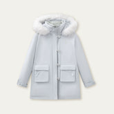 This two-in-one down jacket combines the structure of a trench coat with the warmth of high-performance down insulation, creating a versatile and stylish winter essential. Crafted from advanced Dupan triple-protection fabric, it offers enhanced resistance to water, oil, and stains while maintaining a sleek, smooth finish. The subtle diagonal texture gives depth to the design, and the detachable hood provides extra wind and cold protection for the face and neck. The soft faux-fur collar adds a touch of sophistication and warmth. Thoughtful details like the dropped sleeves and stand collar enhance comfort and create a more flattering silhouette. Lined with soft twill fabric and filled with 90% premium white duck down, this jacket ensures lightweight yet reliable insulation, keeping you cozy and refined throughout the winter season.
