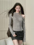 Gray & Black Ruched Draped Asymmetric Blouse - CHINASQUAD