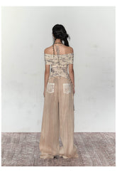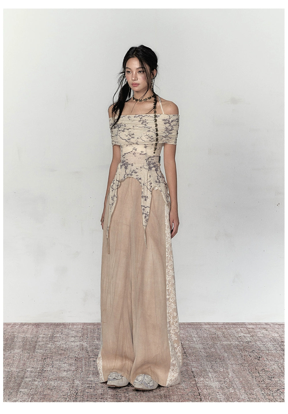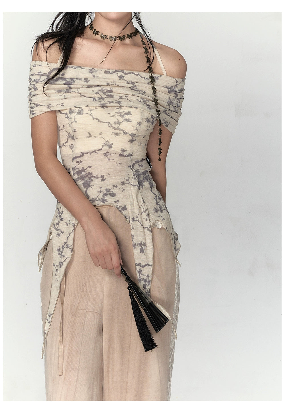 Gray Mesh Irregular Off-Shoulder Top - CHINASQUAD